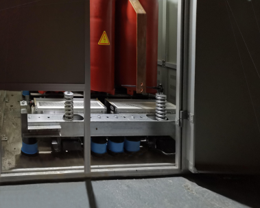 By making a composite shock absorbing platform, dry type transformer is placed on it, and the bus bar is processed with soft connection, so that the dry type transformer is completely suspended in the air, not in direct contact with the structure, so as to block the low-frequency noise transmission through the structure.