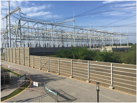Treatment measures: set up sound barrier, the vertical column adopts plastic h-shaped steel, the sound absorption body adopts porous plastic spraying aluminum plate, centrifugal glass wool board, glass fiber cloth, acoustic cavity, plastic spraying panel mixed sound barrier. The top adopts arc reflector plate.